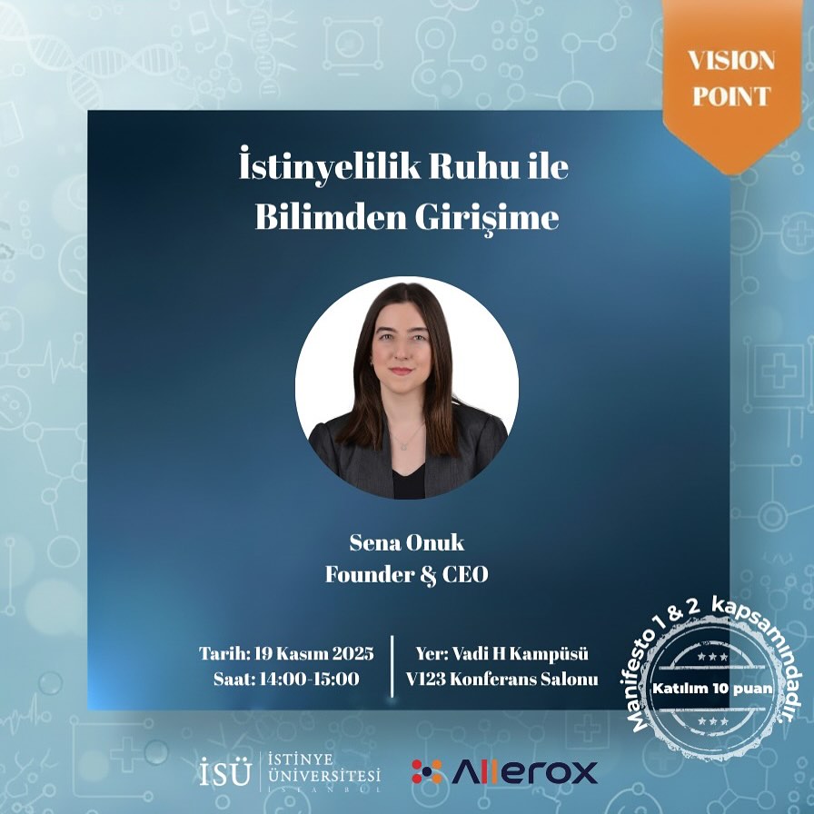 Vision Point serimiz, ilham veren kariyer hikâyeleri ve gerçek deneyimlerle sizleri buluşturmaya devam ediyor. Bu oturumda, İstinyelilik ruhunu bilimsel meraktan girişimciliğe taşıyan bir başarı yolculuğuna tanıklık edeceğiz.