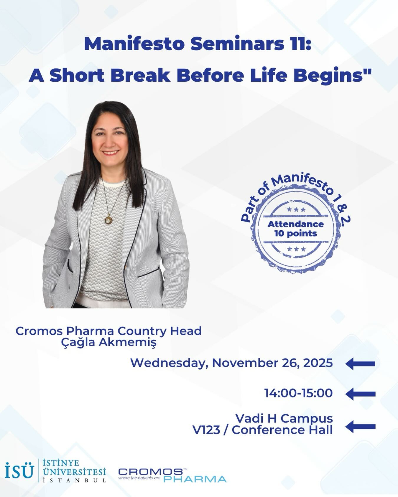 We invite you to the eleventh session of our Manifesto Seminar Series, featuring Çağla Akmemiş, Country Manager of Cromos Pharma Turkey.