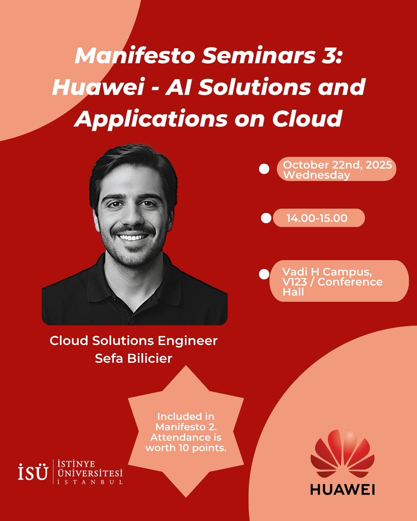 The Manifesto Seminars series continues with its third session. This time, we will explore AI solutions and applications on cloud with Sefa Bilicier, Cloud Solution Engineer at Huawei.