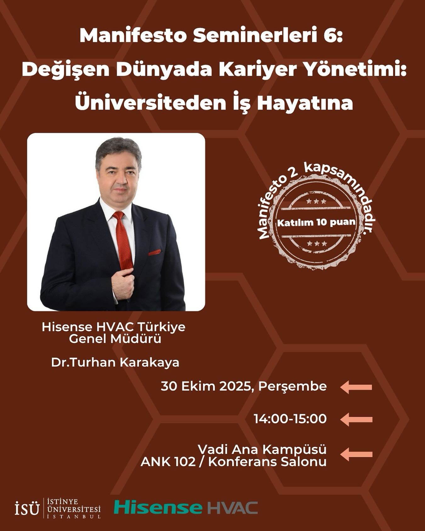 Hisense HVAC Türkiye Genel Müdürü Dr. Turhan Karakaya, üniversite yıllarından profesyonel iş yaşamına geçiş sürecinde kariyer yönetimi üzerine değerli deneyimlerini paylaşacak.