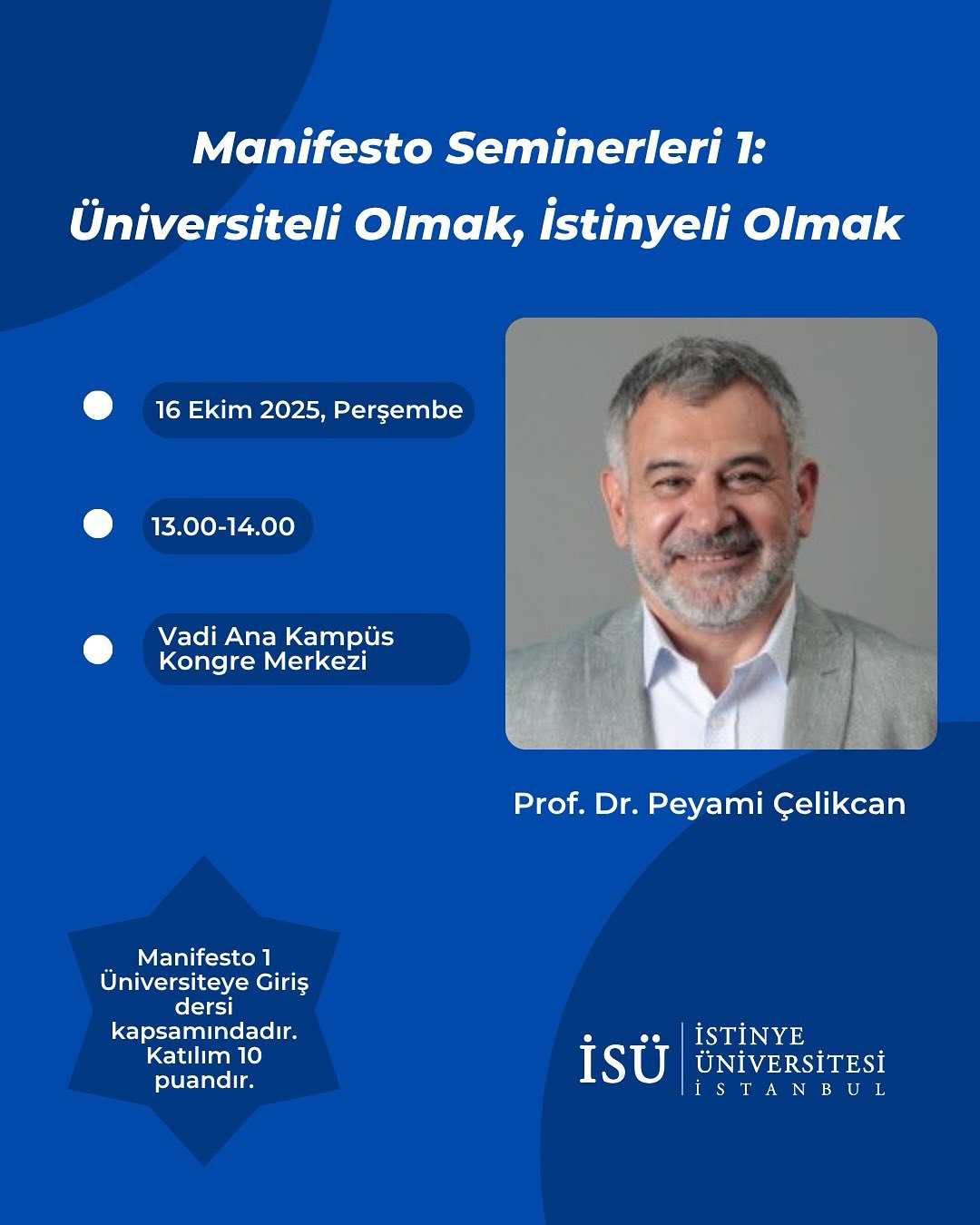 Tüm öğrencilerimizi “Manifesto Seminerleri 1: Üniversiteli Olmak, İstinye’li Olmak” etkinliğimize davet ediyoruz.