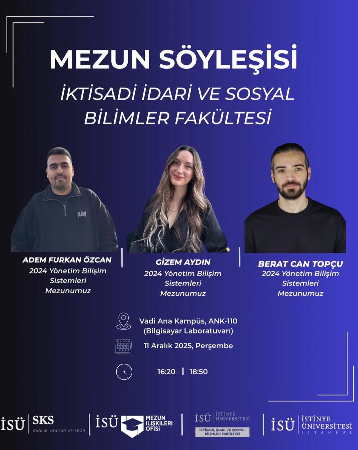 Mezunlarımız, üniversite sonrası kariyer süreçlerini, iş hayatına geçiş deneyimlerini ve sektöre dair bakış açılarını paylaşacak.